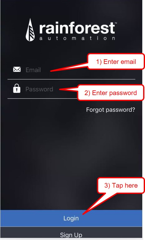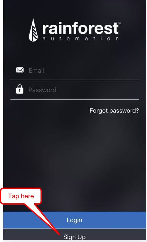 When the login screen comes up, tap “Sign Up” at the bottom of the screen.